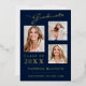 Invitation En Aluminium 3 Photo Script Navy Blue Grad Announcement