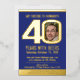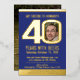 Invitation En Aluminium 40e fête d'anniversaire noir bleu or feuille photo