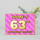 La façade de cette carte d'invitation amusante et joyeuse fête de soixante-troisième anniversaire/fête de fête comporte un nom personnalisé, un grand numéro "63e", le message "FÊTE D'ANNIVERSAIRE !", et une frontière. L'arrière - plan de l'avant a un motif aimante rose clair et rose foncé rayures, aux formes de coeur. Le verso présente des détails personnalisés sur l'événement, tels que la date, l'heure, l'emplacement et toute autre information importante. Des invitations personnalisables comme celles-ci pourraient être une façon amusante pour les invités invitations à une fête d’anniversaire qui se tient pour célébrer le 63e anniversaire de quelqu’un. [~Z0000603]
