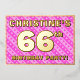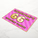 La façade de cette joyeuse carte d'invitation de fête de soixante-sixième anniversaire/fête de fête comporte un nom modifiable, un grand numéro "66e", le message "FÊTE D'ANNIVERSAIRE !", et une frontière. L'arrière - plan de l'avant a un amusant motif rose foncé et rose clair rayures, avec des formes de coeur. Le verso présente des détails personnalisés sur l'événement, tels que la date, l'heure, l'emplacement/le lieu et toute autre information qui peut être importante. Des invitations modifiables comme celles-ci pourraient être une façon amusante pour les invités/participants invitations à une fête d’anniversaire organisée pour célébrer le 66e anniversaire de quelqu’un. [~Z0000603]