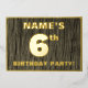 Le recto de cette carte d'invitation en gras pour fêtes de sixième anniversaire comporte un nom personnalisable, un grand numéro "6e", le message "FÊTE D'ANNIVERSAIRE !", et une bordure, le tout en papier peint. L'arrière - plan de l'avant présente un motif d'inspiration rustique, mais élégante, à la fois en faux bois. Le verso présente des détails personnalisés sur l'événement, tels que la date, l'heure, le lieu/lieu et toute autre information pertinente. Des invitations modifiables comme celles-ci pourraient être utilisées pour les participants invitations à une fête d’anniversaire qui se tient pour honorer le 6e anniversaire de quelqu’un. [~Z0000598]