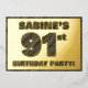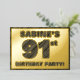 La façade de cette carte d'invitation audacieuse à fêter quatre-vingt-onze ans comporte un nom modifiable, un grand numéro "91st", le message "BANTHDAY PARTY!", et une bordure, toutes avec un motif rustique, mais sophistiqué, à la fausse grain de bois. Le verso présente des détails personnalisés sur l'événement, tels que la date, l'heure, le lieu et toute autre information utile. Des invitations modifiables comme celles-ci pourraient être utilisées pour les invités ou les participants invitations à une réunion d’anniversaire qui a lieu pour honorer le 91e anniversaire de quelqu’un. [~Z0000595]
