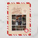 Apportez la magie des vacances à la vie avec ce design nostalgique inspiré d'un voyage de Noël classique. Avec des tons vintages chauds, des postmarks du pôle Nord, un code-barres festif et des étiquettes fantaisistes comme "Reindeer Crossing" et "Magical Ride", cette disposition saisit l'émerveillement de l'hiver. Ajoutez votre propre photo de famille pour une touche chaleureuse, parfaite pour créer des souvenirs qui sortent tout droit d'un livre d'histoires. Idéal pour des salutations douillettes, des traditions magiques et des surprises de vacances remplies de joie.