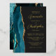 Invitation En Aluminium Agate Turquoise Blue Gold Script Dark Mariage