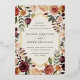 Piège à somptueux tons de terre, cet élégant faire-part de mariage floral ou les mariages d'automne ou d'hiver présente vos détails nichés à l'intérieur d'un hexagone allongé en feuille d'or entouré de roses d'aquarelle, de mamans et de verdure dans des couleurs d'automne rustiques, comme la pêche, l'ivoire, le rougissement, le bordeaux et le vert.