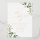 Elégant faire-part de mariage botanique avec vos détails mariages affichés en papier doré avec feuillage aquarelle peint dans des tons vibrants de printemps et vert mousse aux coins et une police calligraphie moderne. L'élégante invitation à un mariage botanique est idéale pour les mariages du printemps et de l'été.