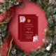 Ce faire-part de mariage chinois moderne est doté d'une véritable feuille d'or double symbole de bonheur et de fleurs de pivoines aquarellées sur un arrière - plan rouge.