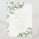 Famille Invitation et amis avec cette feuille d'or verdoyante pressé l'invitation de brunch répétition. Il est doté d'une végétation aquarelle et de fleurs blanches. Personnalisez cette invitation de brunch de répétition verdoyante en ajoutant des noms, l'heure de l'événement, la date et d'autres détails. Cette invitation de brunch de répétition de feuille d'or est disponible en d'autres couleurs de feuille.
