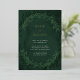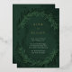 Feuilles d'or et de magnifiques lauriers spectaculaires élèvent cette élégante invitation de mariage avec un arrière - plan profond vert émeraude d'aquarelle.