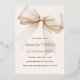 Un arrière - plan beige doux, crème, décoré d'un grand arc. Personnalisez et ajoutez un nom et des détails du parti. Le nom et le mot Quinceañera sont écrits avec de véritables feuilles d'or roses.