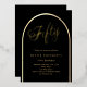 Une élégante invitation au 50e anniversaire. Un arrière - plan noir avec une arche dorée à l'avant. Cinquante est écrit avec du papier or