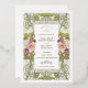 Vivez le charme et la beauté d'une époque révolue avec nos invitations de mariage inspirées d'Alphonse Mucha. Conçues avec une attention aux détails, ces invitations présentent un magnifique design aquarelle d'un bouquet de roses mauves poussiéreuses et de verdure luxuriante, évoquant les motifs délicats et complexes de la période Art nouveau. Le design en forme de portail encapsule les détails de votre mariage, symbolisant une porte vers votre journée mémorable et le début d'un nouveau chapitre dans votre vie.