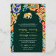Invitation En Aluminium Art populaire indien Elephant Mariage Emerald Gold