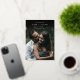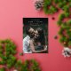 Une simple et élégante sauvegarde le design de date pour les couples modernes, avec une photo verticale qui se détache au noir au sommet. Un élément géométrique de feuille d'or porte vos noms, date mariage et emplacement dans les lettres chic sans serif et italique. Ajoutez des détails supplémentaires à l'arrière. En raison de l'emplacement des éléments de conception, ce style est recommandé pour les photos verticales avec un grand espace au sommet.