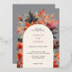 Faire-part de mariage gris sophistiqué avec feuilles d'érable aquarelle et détails floraux avec touches oranges brûlées. Idéal pour les fêtes d'automne modernes et rustiques ou boho.