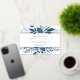 Notre faire-part de mariage d'azur sauvage au format paysage encadre vos détails mariages avec une bordure supérieure et inférieure de feuillage d'aquarelle dans des tons glacés bleu marine et bleu ciel. Un choix moderne mais organique pour les mariages d'hiver avec des plantes d'aquarelle peintes de manière complexe et des garnitures en feuille d'argent.