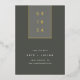 Un design simple et élégant enregistrer la date pour les couples modernes, avec un élément géométrique feuille d'or portant votre date de mariage contre un ton sur ton sombre fumée vert olive arrière - plan. Personnalisez avec vos noms, l'emplacement du mariage et le site Web ou des détails supplémentaires en bas.