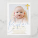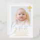 Invitation En Aluminium Baptême Gold Cross Pale Blue Script