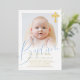 Invitation de baptême garçon en feuille d'or personnalisée avec une photo de votre bébé garçon. Baptême bleu pâle et or pour un garçon avec un modèle photo.