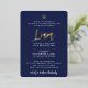 Invitation En Aluminium BAR MITZVAH lettrage script or bleu marine