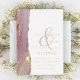Le faire-part de mariage présente une belle oeuvre d'encre à alcool créée par l'artiste de renom Pauline Benjes. Le design est exquis, avec une police serif sophistiquée et une esperluette rose tourbillonnante qui encadre élégamment les noms de la mariée et du marié. Belle Invitation de Mariage d'huile rose et or Dusty.