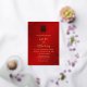 Cet élégant faire-part de mariage chinois présente une véritable feuille d'or artistique symbole double bonheur sur un arrière - plan floral rouge rubis chatoyant. Noms de mariée et de mariée dans un élégant script manuscrit moderne. Avec un texte à l'envers en chinois.