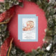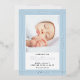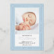 Faire-part bébé adopté en argent et bleu, présenter votre bébé adopté avec choisi, aimé, voulu, adopté en texte argenté autour d'une photo de votre bébé. Son nom dans un script argenté.