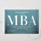 Une invitation à la remise de diplômes MBA avec feuille d'argent, texte blanc, et un arrière - plan bleu. Ajoutez simplement vos informations, ajoutez cette invitation à votre panier et célébrez cette réalisation majeure. Bleu Silver MBA Graduation Foil Invitation Conception vacances | ©Melissa Patton - Designer