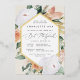 L'élégante invitation à la bat mitzvah florale présente un cadre hexagonal allongé de fleurs d'aquarelle et de feuillage dans des tons de pêche, blanc, ivoire et vert sauge inspirés du désert de saumons boho, et finie par un garnissage en feuille d'or. Personnalisez avec votre temple ou la cérémonie de synagogue et les détails de la fête en lettres modernes.