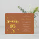 Boho terracotta retro script photo Sweet 16 anniversaire invitation fête avec de la feuille d'or réelle.