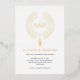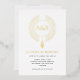 Cette faire-part de mariage élégante est ornée d'un arrière - plan blanc aux accents de feuille d'or et de cercles concentriques. Vos initiales sont affichées dans une police élégante à l'intérieur des cercles, qui ressemblent à un étouffement de fil. Un accent de feuille au centre inférieur ajoute au design. Le dos de l’invitation a un motif en diagonale des noms du couple en or sur blanc pour plus de raffinement.