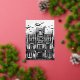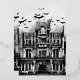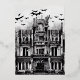 Un vieux manoir hanté avec des chauves-souris volant au-dessus. Ajoutez votre propre texte pour personnaliser.