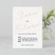 Calligraphie de script moderne faire-part de mariage véritable feuille d'or. Un élégant faire-part de mariage minimal avec vos noms en script calligraly en feuille d'or. Le dos comprend un motif or et blanc de vos noms. Veuillez noter que si vos noms à l'arrière prennent plus ou moins d'espace, customisez-le pour augmenter ou diminuer la taille du texte en conséquence.