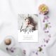 Célébrez le baptême de votre fils ou de votre fille avec notre design magnifique, moderne et minimal. Notre design comprend une mise en page photo complète, avec le mot "baptême" conçu dans une belle police de script de style brosse. Le "T" du mot baptême représente une croix. Les détails de l'événement sont conçus dans un agencement propre et moderne. La face arrière contient la même photo utilisée à l'avant, les bords du coin photo en faux or sont ajoutés à la photo.
