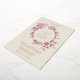 Faire-part de mariage fleurie élégante avec une couronne composée de fleurs de cerisier rose aquarelle, avec vos noms à l'intérieur, sur un arrière - plan d'ivoire. Tout le texte est en feuille d'or rose. Ce Faire-part de mariage chic conviendra aux mariages de printemps ou d'été.
