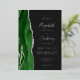 Le bord gauche de cette élégante faire-part de mariage moderne est doté d'une bordure en aquarelle vert chasseur, recouverte d'une parties scintillant en faux argent. Le texte personnalisable combine écriture manuscrite, copperplate et polices italiques dans un vrai papier argenté sur un arrière - plan non noir. L'envers présente un design d'agate vert et argenté assorti.