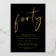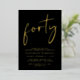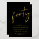 Élevez votre fête de 40ème anniversaire avec cette invitation noire chic avec "quarante" dans un script élégant, votre nom dans la typographie serif élégante et les détails de la fête dans le lettrage simple et moderne, le tout rendu dans votre choix d'or authentique, feuille d'argent ou feuille d'or rose.