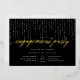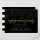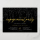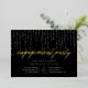 Nos élégantes invitations à des fiançailles en noir et blanc chic présentent un riche arrière - plan noir avec des cordes de lumières blanches sur le dessus, et "fiançailles" dans la typographie de script de calligraphie de feuille d'or chic. Personnalisez avec vos détails de célébration fiançailles sous en lettres blanches.