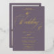 Chic et élégant vrai feuille d'or et violet foncé faire-part de mariage de calligraphie photo.Avec un magnifique script de calligraphie de brosse.