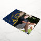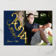 Invitation de graduation classique 2024 avec photo en bleu marine avec élégant papier doré. Faire-part moderne et élégant avec de l'information sur la grande fête sur le dos.