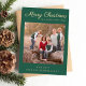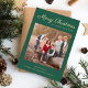 Classic Green Script Christmas Photo Gold Foil Invitation.