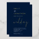 Classy Script QR Code Mariage or Marine. Avec vos noms et Mariage dans le luxe de l'or, argent ou or rose véritable feuille. Style minimaliste, bleu marine et blanc classe. Mariage est dans un script stylé. Personnalisez facilement le reste du texte à vos propres détails.