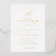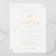 Un faire-part de mariage simple et chic en feuille d'or pressé avec des détails de calligraphie de script élégants et du texte classique. Cliquez sur le bouton Modifier pour customiser cette conception.