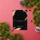 Il s'agit d'une carte de faire-part de mariage ultra moderne avec un code QR au dos afin que vous n'ayez pas à vous soucier de RSVP. Il est en noir et or.