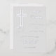 Cette belle faire-part de mariage au choix d'or, d'argent ou d'or rose avec un arrière - plan gris argenté donne un sens de l'élégance à votre mariage ! L'avant gauche a une belle croix à double ligne avec deux coeurs au pied de celle-ci. Votre texte mariage est à droite de l'image. Le verso de l'invitation est assorti gris argenté. Elégant pour toute saison !