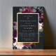L'élégante invitation à la confirmation florale présente une bordure de marsala bordeaux pourpre, rose rousse et bleu poussiéreux, avec feuillage botanique luxuriant et verdure et garniture en feuille d'or. Personnalisez avec votre cérémonie d'église et les détails de la célébration en lettres modernes sur un riche arrière - plan au charbon de bois.
