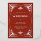 Ces invitations de mariage glamour en feuille d'argent présentent une touche moderne d'art déco classique. Un cadre géométrique et ornementé et argenté décorent un élégant arrière - plan rouge festif et festif pour un look mariage des années 1920 spectaculaire, glamour et vintage, qui est parfait pour votre mariage de Noël. Ajoutez votre photo à l'arrière.