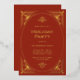 Ces élégantes invitations de fêtes de Noël ont une touche moderne sur l'art déco classique. Un cadre géométrique orné et doré et ornementé décorent un arrière - plan rouge festif pour un look de vacances classique mais glamour.