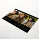Un script ludique mais simple diplômé en feuille se trouve au bas de 3 photos verticales. Le texte personnalisé comprend la place pour le nom du diplômé ainsi que les détails de l'école et de l'année. Le dossier noir neutre est doté d'un simple motif de grille, et la couleur peut être changée en cliquant sur "customiser plus loin". Le centre a de la place pour le texte d'invitation de la fête de remise de diplômes ou il peut être laissé vide. Annoncez la réalisation de votre diplômé à vos amis et à votre famille avec ce design!