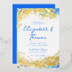 Un modèle d'invitation de mariage de plage qui présente un arrière - plan abstrait peint, expressif, aquarelle d'une grande vague de surfer en bleu et turquoise avec une véritable feuille d'or et la calligraphie moderne pour les noms. Classé et élégant, simple et moderne, il est un choix agréable pour un mariage d'été, un mariage d'escalier ou un mariage à la plage, un mariage de plage, un mariage de surf ou un mariage inspiré par le surf.